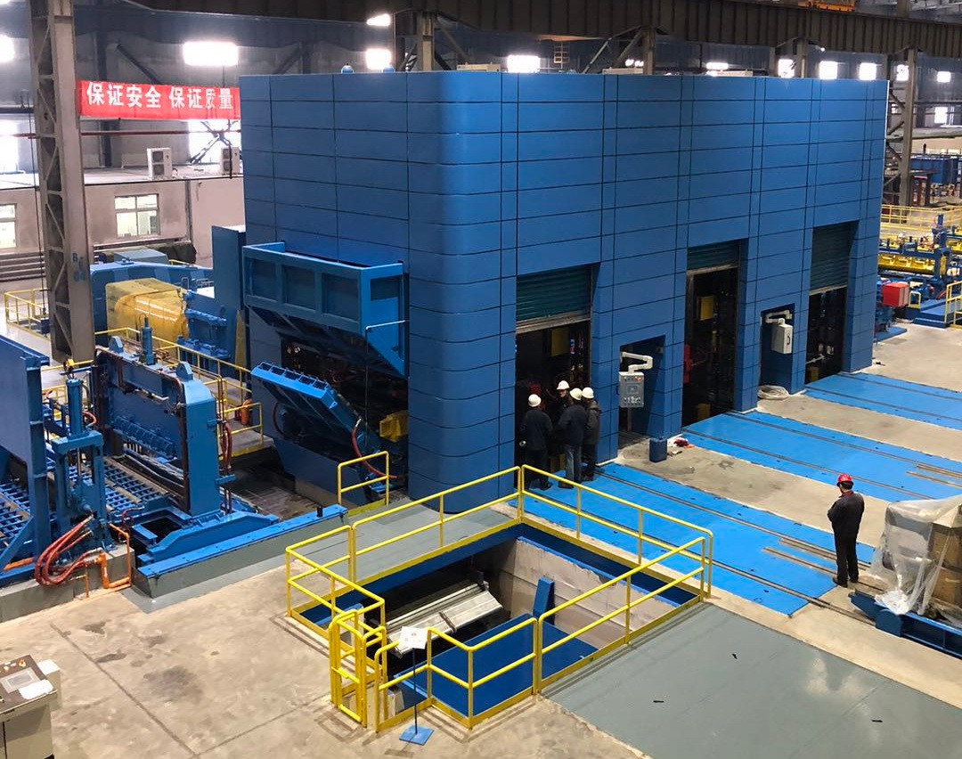 鎮江市宏業科技有限公司為內蒙古聯晟新能源材料有限公司設計制造的2300mm鋁板兩機架冷精軋機正在做發貨前的裝配測試工作。